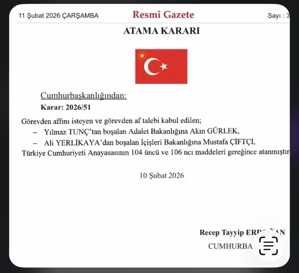 Hukuk sistemimizin güçlenmesi yolunda büyük emekleri olan Yılmaz Tunç kardeşimiz, kendi rızasıyla görevinden affını istemiş ve biz de bu talebini uygun görmüş bulunuyoruz. Kendisine bugüne kadar sunduğu tüm hizmetler ve döktüğü alın teri için gönülden teşekkür ediyoruz. Adalet Bakanlığı koltuğuna ise hukuk camiamızın tecrübeli isimlerinden biri olan Akın Gürlek atanmıştır. Yeni dönemde de adalet terazisinin hassasiyetle korunması ve her bir vatandaşımızın hukuk devletine olan güveninin pekişmesi en büyük gayemiz olacaktır.